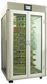 顶置机箱内设有2组4风机,实现“一备一用”,降低故障风险。正面配置7寸彩色触摸屏及PLC控制系统,通过触摸屏可调节换气次数、光照度、光照周期等,同时可实时显示温湿度压差,并带有过滤器更换和故障报警提示。
